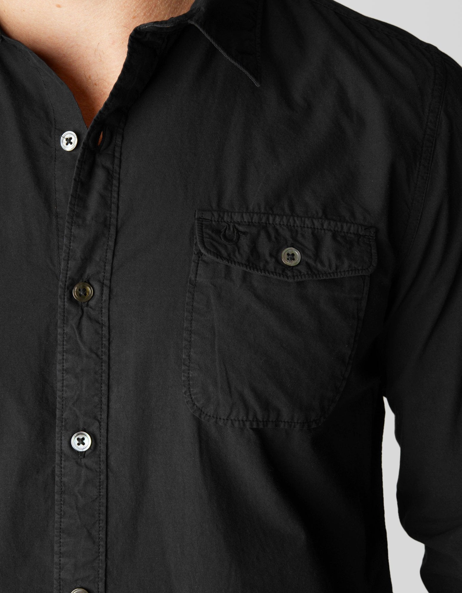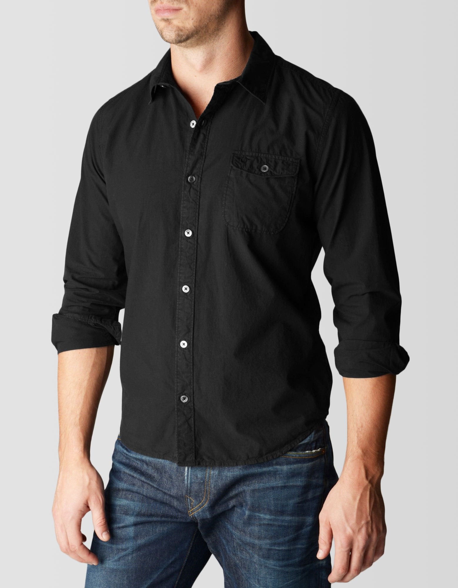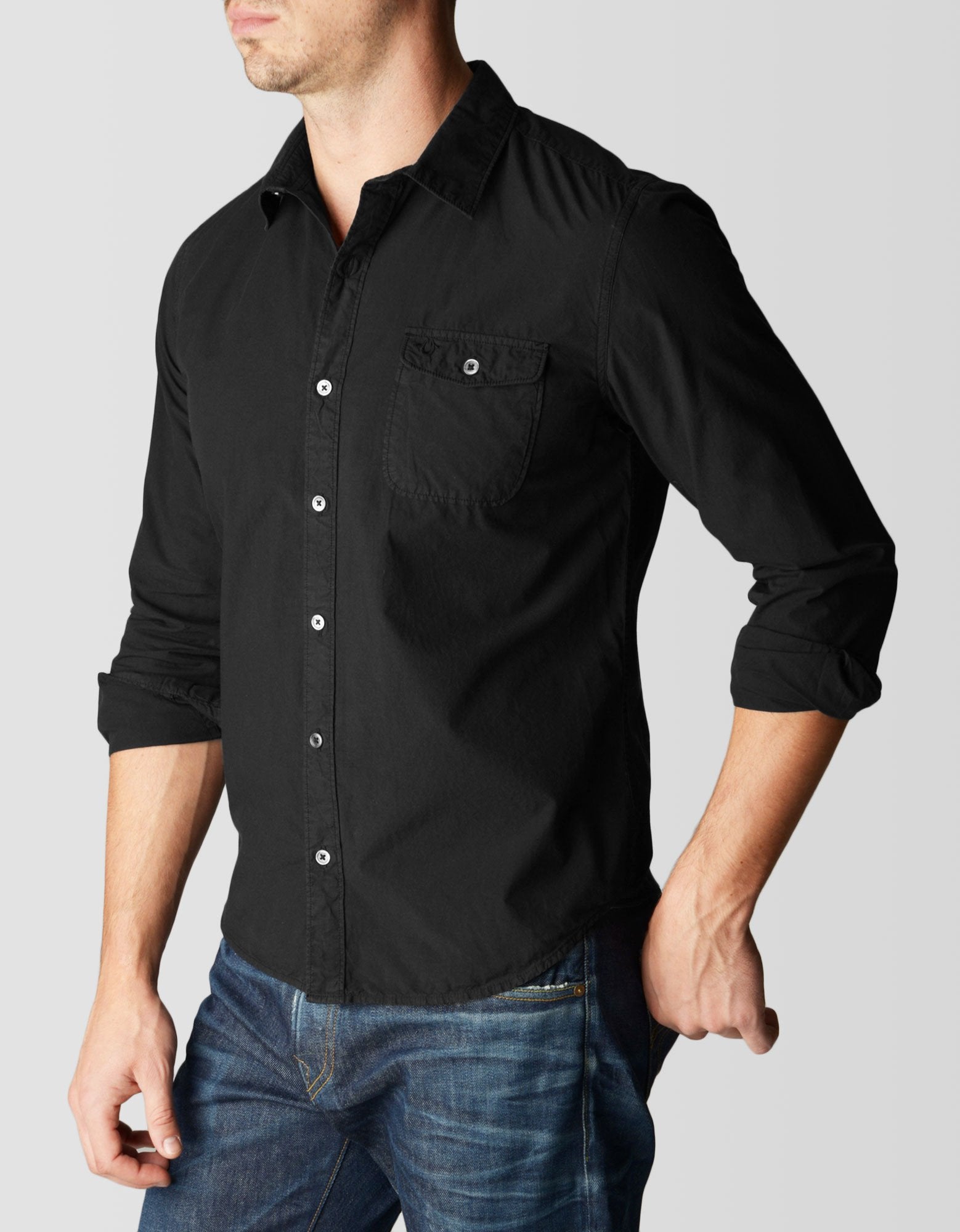 We're returning back to basics this season and paying homage to time-honored classics like the staple button down. This iteration follows a minimal motif highlighted by a single chest pocket and branded hardware. In basic black, it's a style that's perfect for dressing up and as such, belongs in every man's closet.